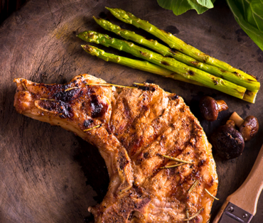 This pan seared pork chop marinated in garlic and herbs makes for a quick and easy homecooked meal.