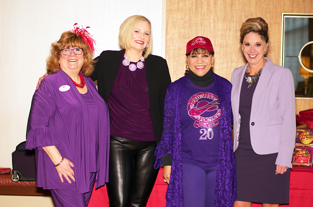 (Pictured L to R): Donna Hempel, Member Experience Specialist for Red Hat Society; Amanda Merriam, Global Dir. of Training for Curves; Kathy Bee, Business to Business for Red Hat Society; and Krishea Holloway, President of Curves NA, Inc., at the Curves Convention in Chicago, November 2018.