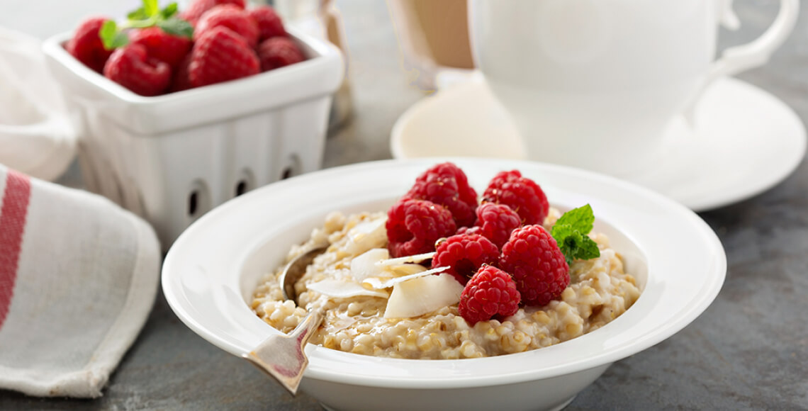 - Half-cup oatmeal topped with 1 cup raspberries