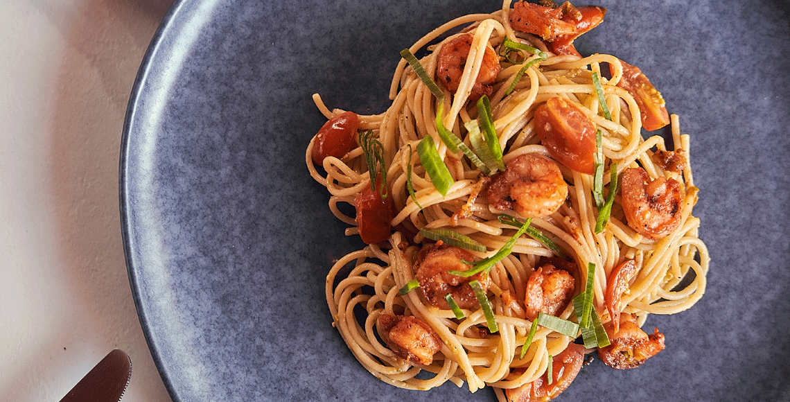 Looking for nutritious pasta recipes? Try our version of a healthy and savoury pesto shrimp pasta! This simple dish takes just minutes to prepare and the recipe can be doubled or tripled for family and friends.
